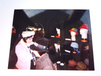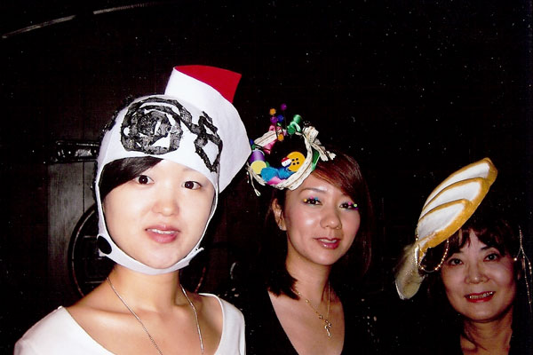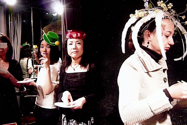 フランス、イタリア、インターナショナル帽子コンクールに於いて数々賞を獲得している妻、平野紀子がアベック タロで帽子の被り方のアドバイスをした。帽子好きでアベック タロの帽子を多く持っている研究生のTさんが帽子の被り方の指導を受けた。