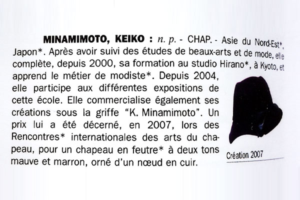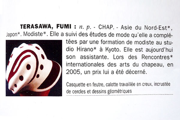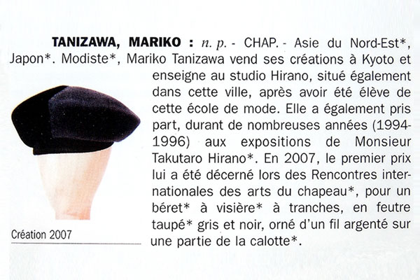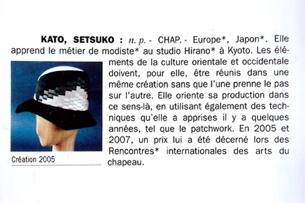 フランスで出版の帽子百科事典へSTUDIO HIRANO KYOTO JAPONに係わる7人が掲載。