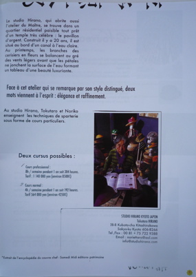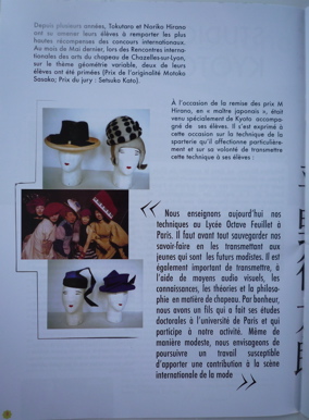 フランス、イギリスの帽子専門誌、新聞へSTUDIO HIRANO KYOTO JAPONが帽子学校(少数の研究所)として、高い評価を受けて嬉しく思う。