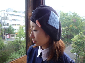 新作のベレーを可愛く被っている尾上 望さん(京都女子大学 アパレル造形同好会)