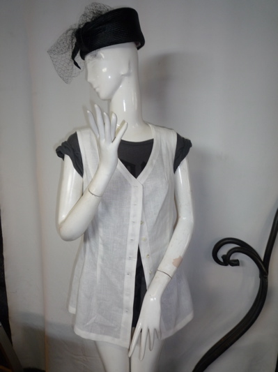 Tシャツ、ブラウスそしてフランスベールがついたクラシックなトーク帽子