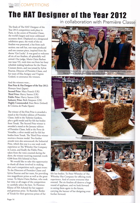 | The HAT Designer of the Year 2012優勝の今井ほのよ「The HAT magazine」掲載 |