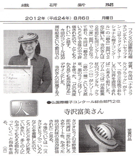 「繊研新聞」掲載記事(2012/08/06付)