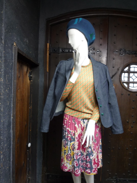 ベレー 曲線と角をはめ込みポップな立体感を作り出し、シルクのスカーフに
