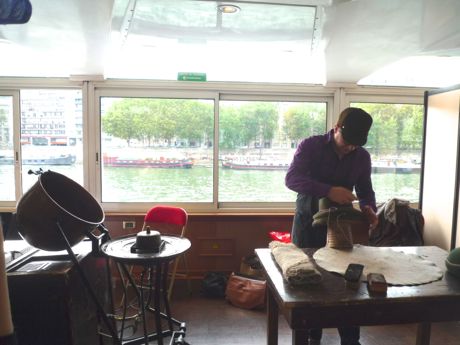 ATELIER-MUSEE DU CHAPEAU 帽体を木型に入れるデモンストレーション