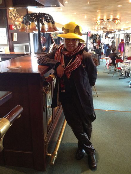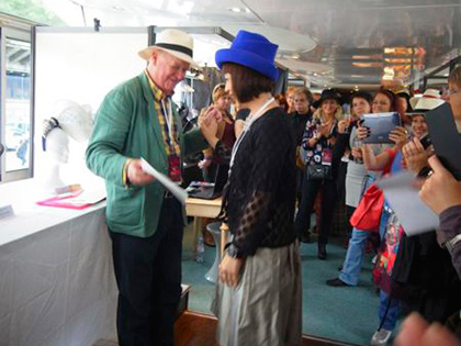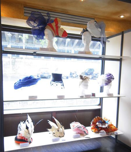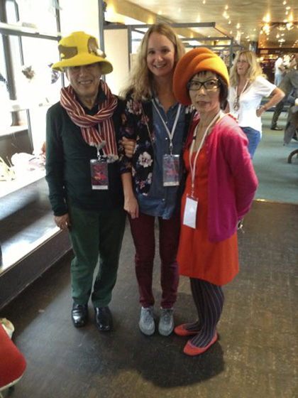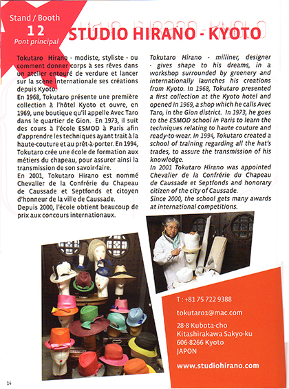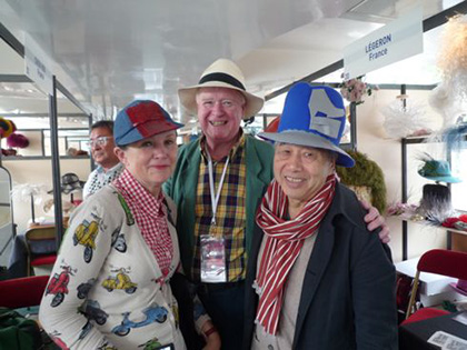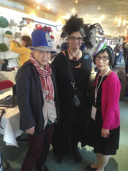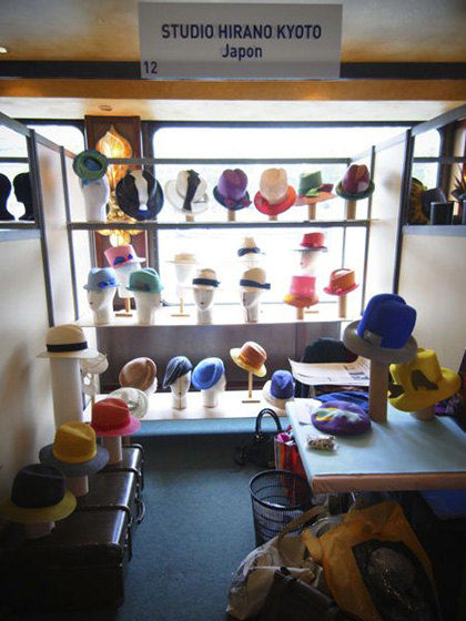 | STUDIO HIRANO KYOTO JAPON スタンド | Jean-Pierre TRITZ 帽子デザイナー(ジャン ポール ゴルチェ帽子デザイナー) LA FORME 帽子木型師マダムMadame Ré パリ在住パリで活躍中、Mme Kyoko MURAYAMA村山京子さんの帽子を被って。 |