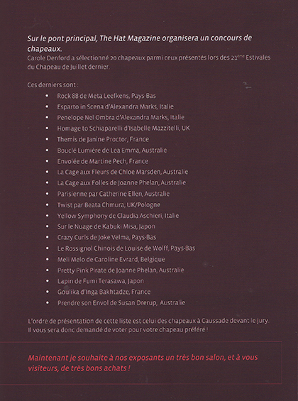 | SALON CHAPMOD<SUR LE BATEAU MAXIM'S> セーヌ川 マキシム船上に於いて帽子エキシビション 9月27日〜9月30日 |