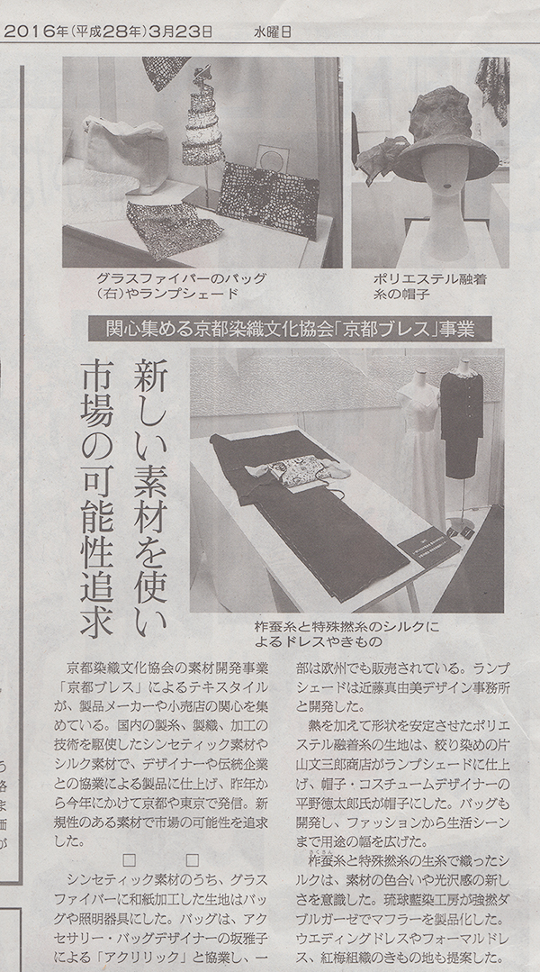 「繊研新聞」掲載記事(2016/03/23付) |