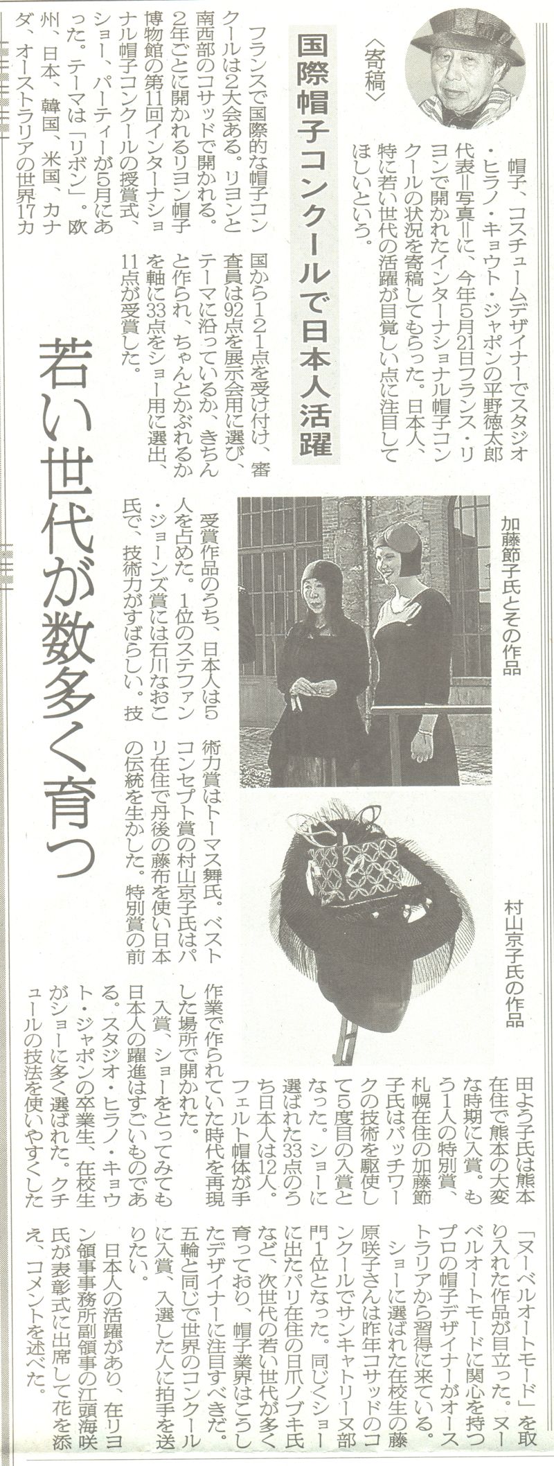 受賞者11人5人日本人の内STUDIO HIRANO KYOTO JAPON 卒業生加藤節子