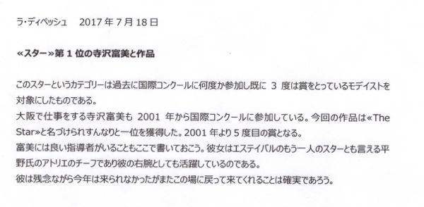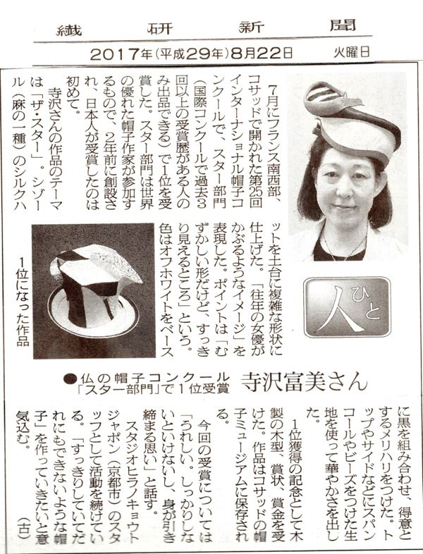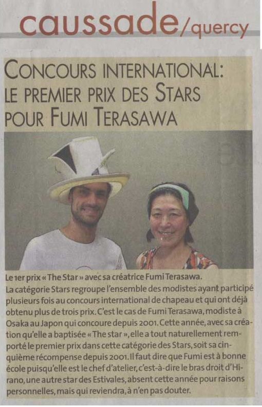 25ème Estivales du Chapeau Caussade 2017 STAR CONTEST賞(入賞3回以上)1位<THE STAR> 布垣さやか Sayaka NUNOGAKI <Coquettish> 藤原咲子 Sakiko FUJIWARA <Le Beau> 竹谷直子 Naoko TAKETANI <Matisse et Hokusai>