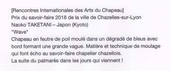フランスATELIER-MUSEE DU CHAPEAUに於いて2年に一度行われる帽子コンクール[Rencontres Internationales des Art du Chapeau]
