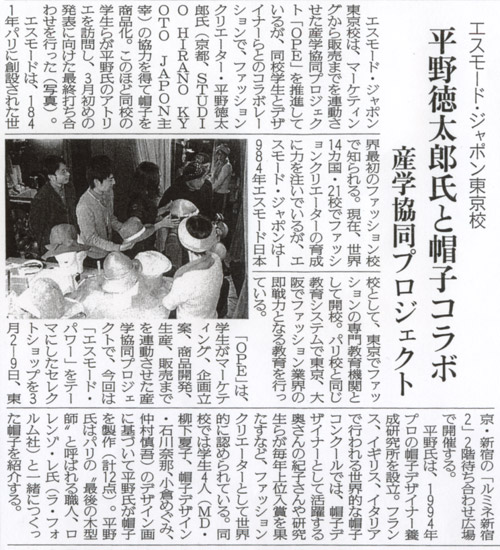 平野徳太郎とエスモードジャポン東京校との帽子コラボ