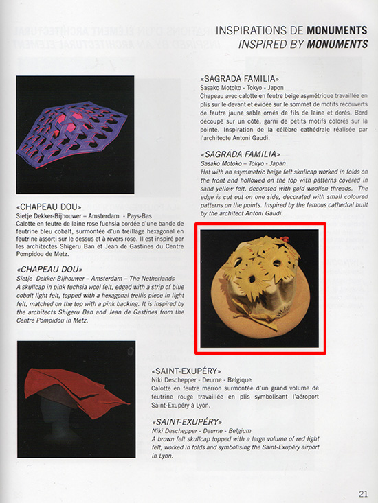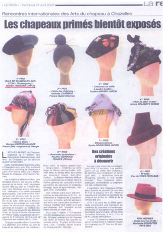 2007年 フランス・リヨン帽子美術館 帽子コンクール10位