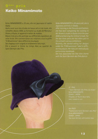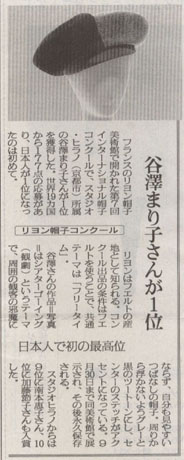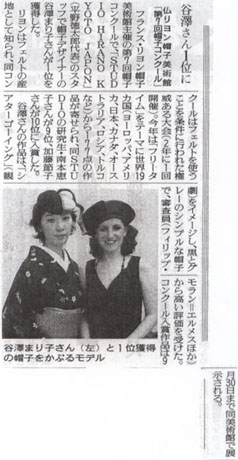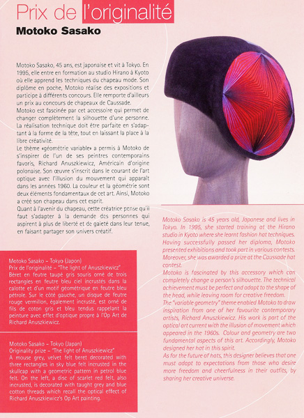 2005年 フランス・リヨン帽子美術館 帽子コンクール4位