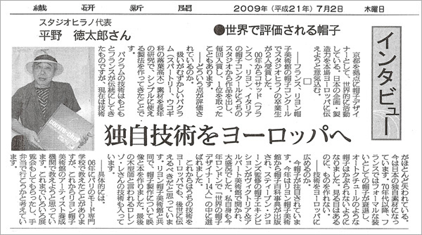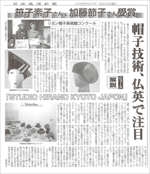 以前リヨン帽子美術館で行われた平野徳太郎の個展に於いて高い評価をされ