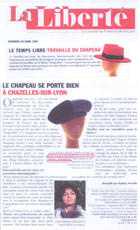 | リヨン市からバスに乗り2時間程の処Chazelles-sur-Lyonに新しく落成した 帽子美術館。フランスへ敬意を評し拍手を送る。 費用の掛け方に驚き。レベルの高さに感動を受けた。 |