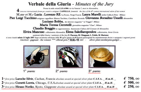 2007年 イタリア アレッサンドリア インターナショナル帽子コンクール